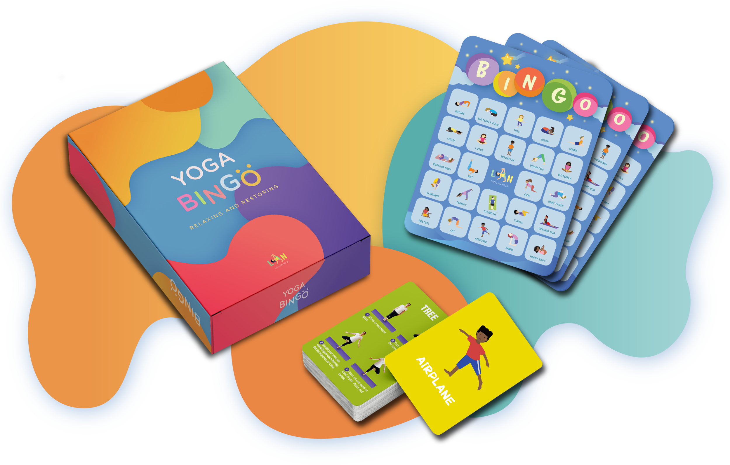 We believe that YOGA BINGO - Relaxing and Restoring can support reduce stress and bring happiness and connection for the whole family.